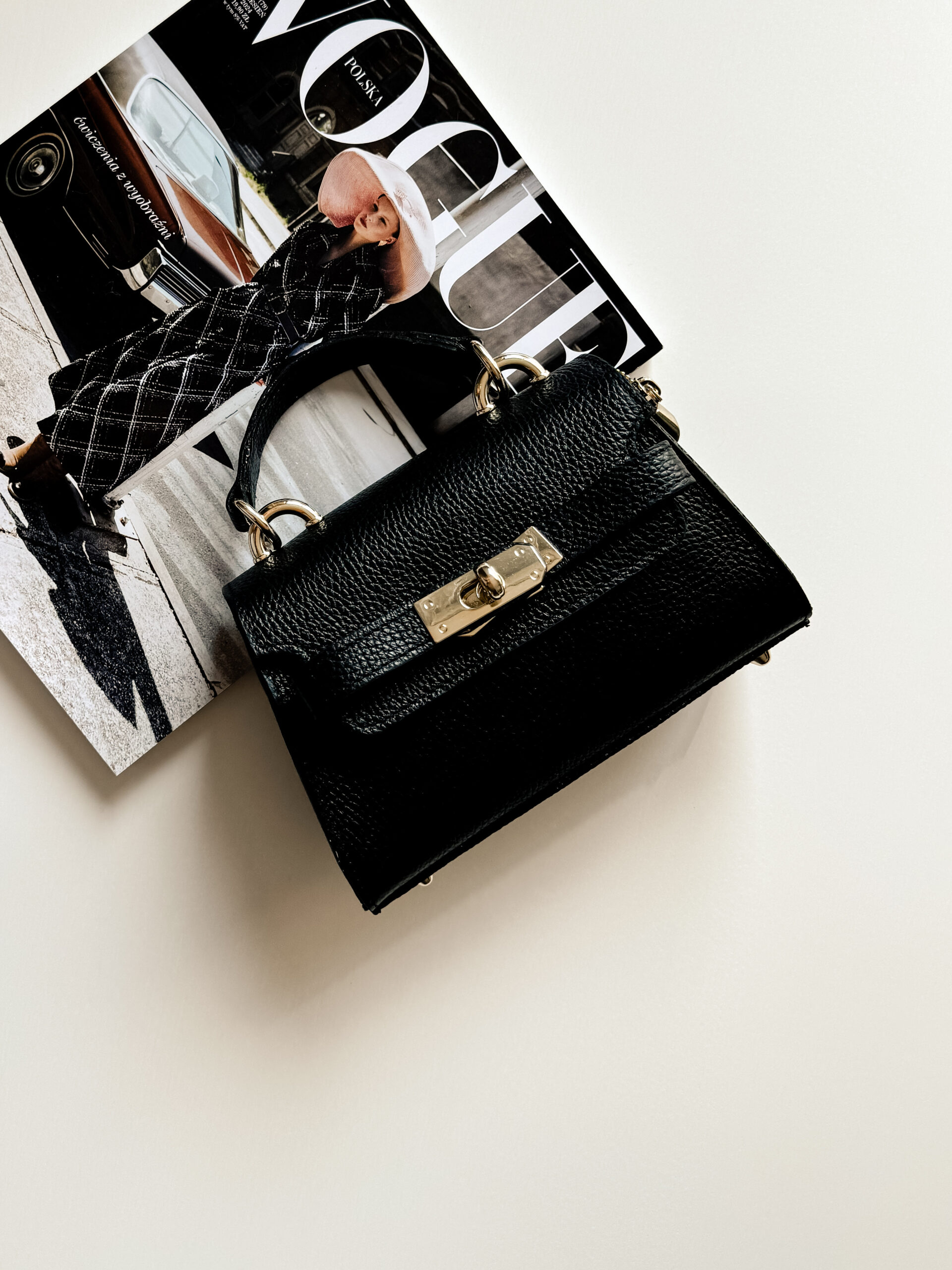 Torebka ma piękny kolor black. W zestawie ma piękny regulowany pasek. Ten model wyróżnia ozdobne zapięcie z dwóch pasków. Materiał to skóra naturalna bydlęca. Wyprodukowana we Włoszech.
